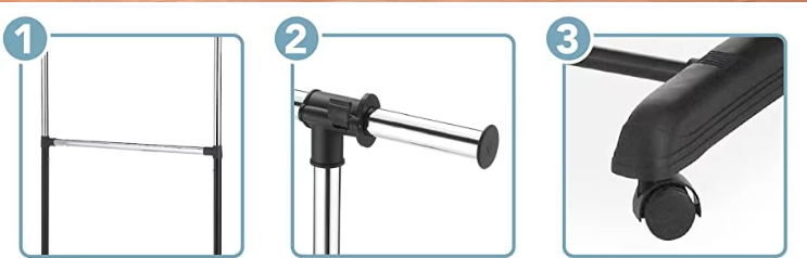 Foldable single-bar steel-made clothing standing frame with fabric drying rack Images |